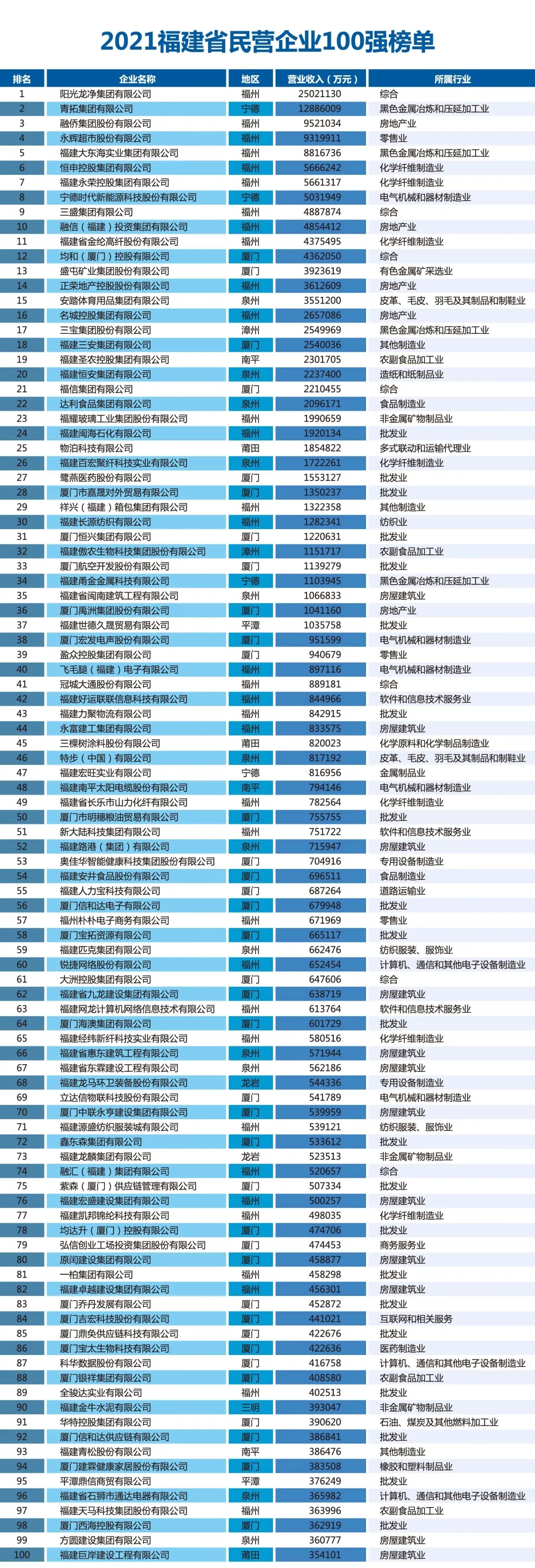 会上,省委统战部副部长、省工商联党组书记李家荣代表省工商联宣布了“2021福建省民营企业100强”“2021福建省立异型民营企业100强”“2021福建省民营企业制造业50强”榜单。“2021福建省民营企业100强”中,DG真人位列第31位,厦门宝拓资源有限公司位列第58位。